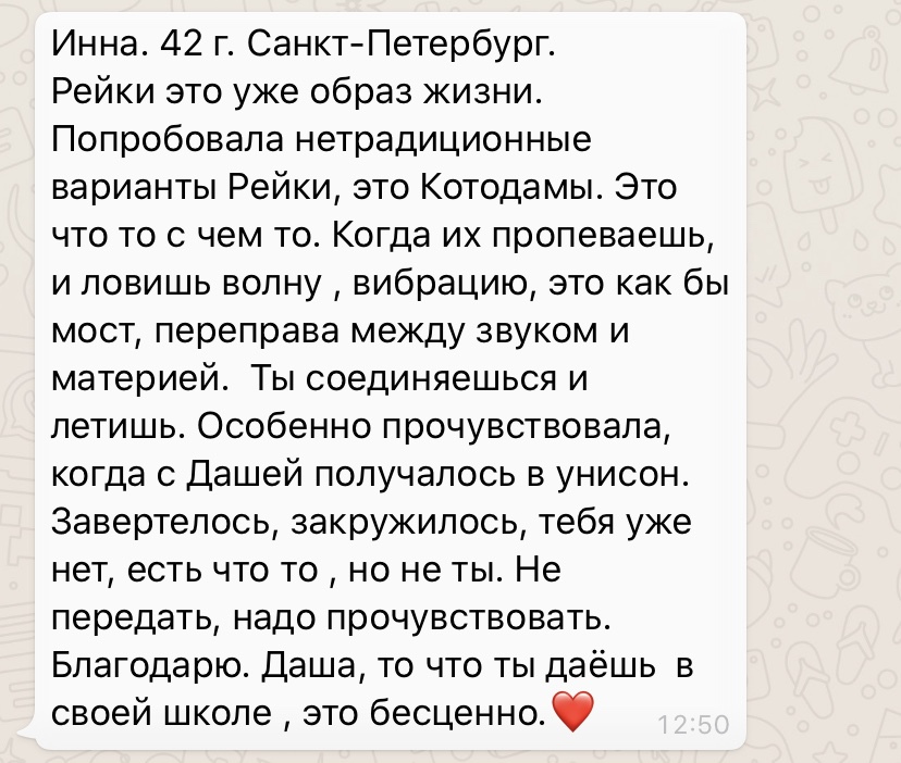 На мастер-классе даются знания по исцелению 4 терапевтическими звуками Котодамами, которые применял Микао Усуи. Знания о Котодамах существуют тысячи лет и применяются Мастерами японской ветки Рейки.